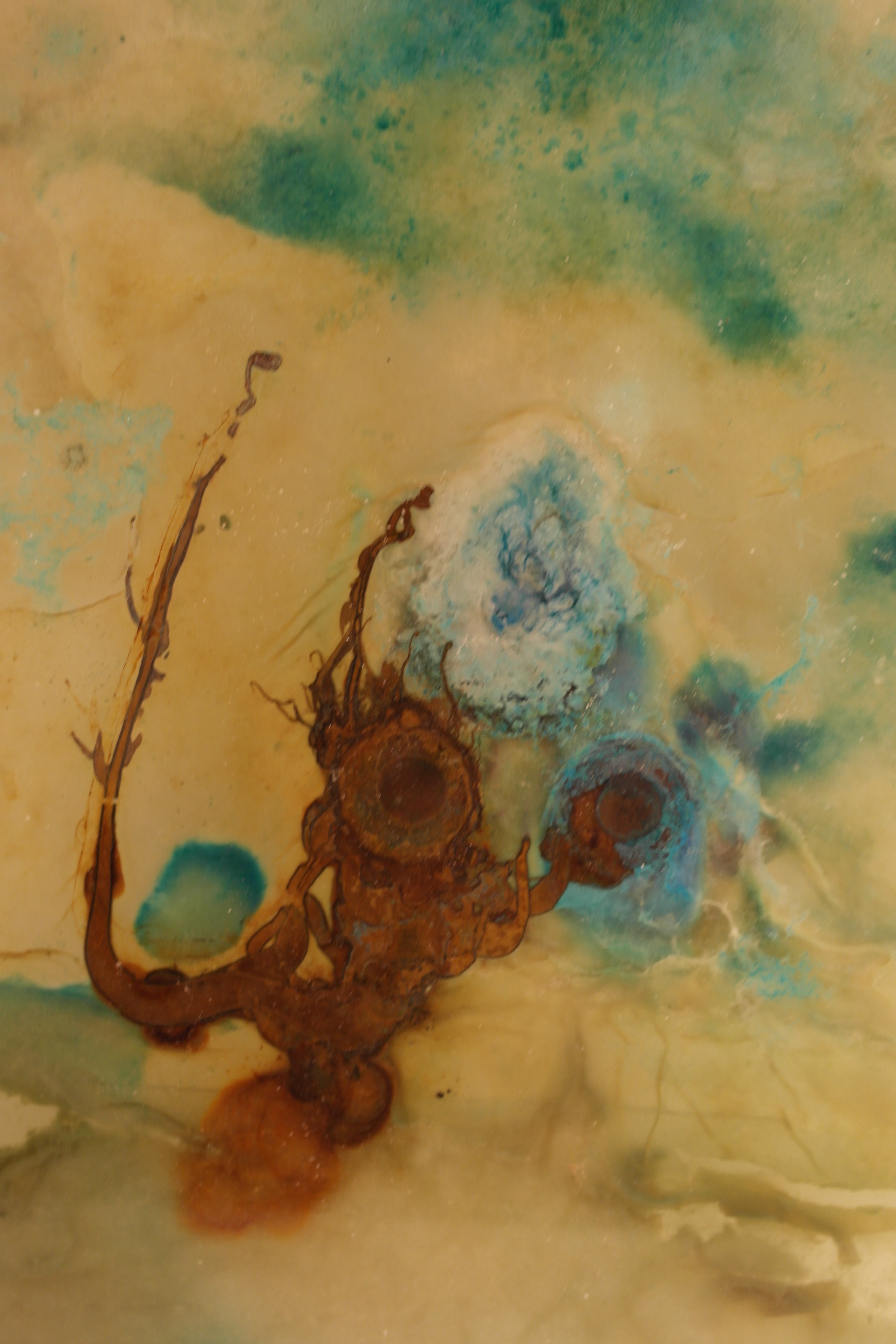 I create the initial conditions for the work to begin, what happens next, the emergent forms and colours are unexpected and surprising, a pleasure to witness and to contemplate the changes that occur over the passage of time.