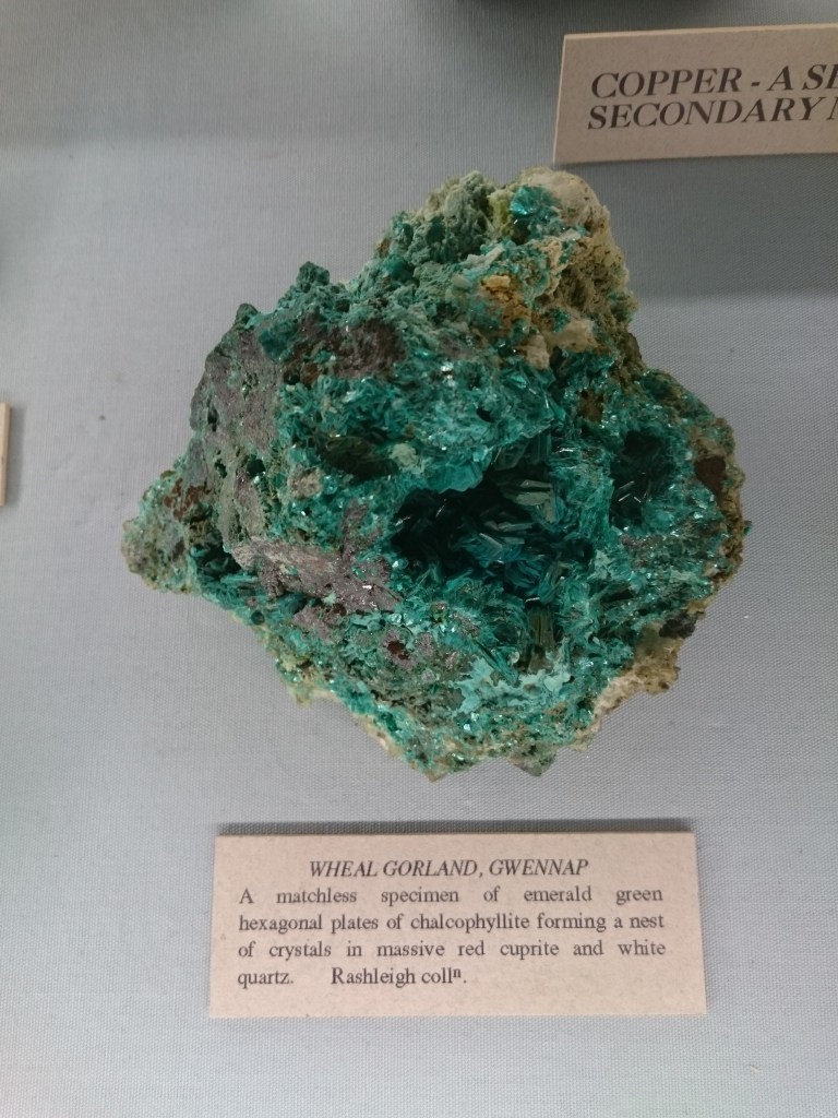 The photograph above is of one specimen from the amazing display of Cornish minerals in The Rashleigh Collection, collected by Philip Rashleigh (1729 – 1811) at the Royal Cornwall Museum in Truro. More details here: