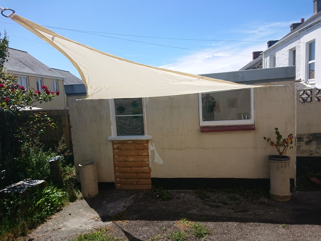 If it happens to be too sunny or raining, there is a shade/umbrella for visitors waiting to go inside the studio gallery (1 in, 1 out).
