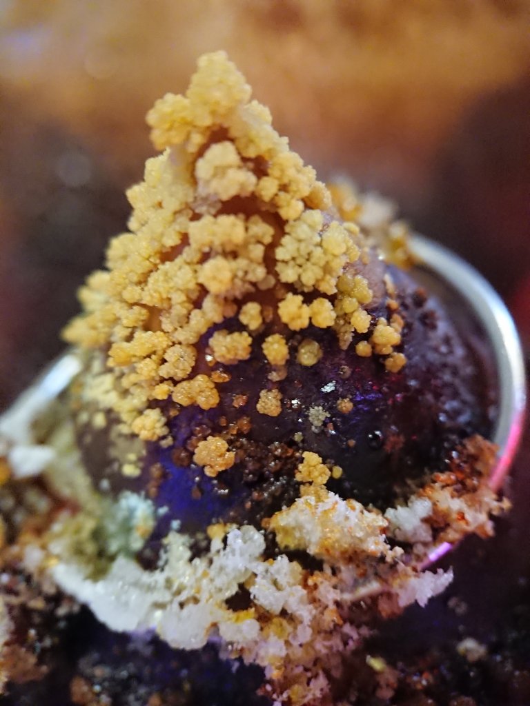 Perhaps carbon probes in closer proximity or a matrix of probes and a more active electrolyte might produce varying voltages that would change in seconds rather than over many hours. These might then dynamically modulate the oscillators and produce interesting and perceptible changes of timbre.