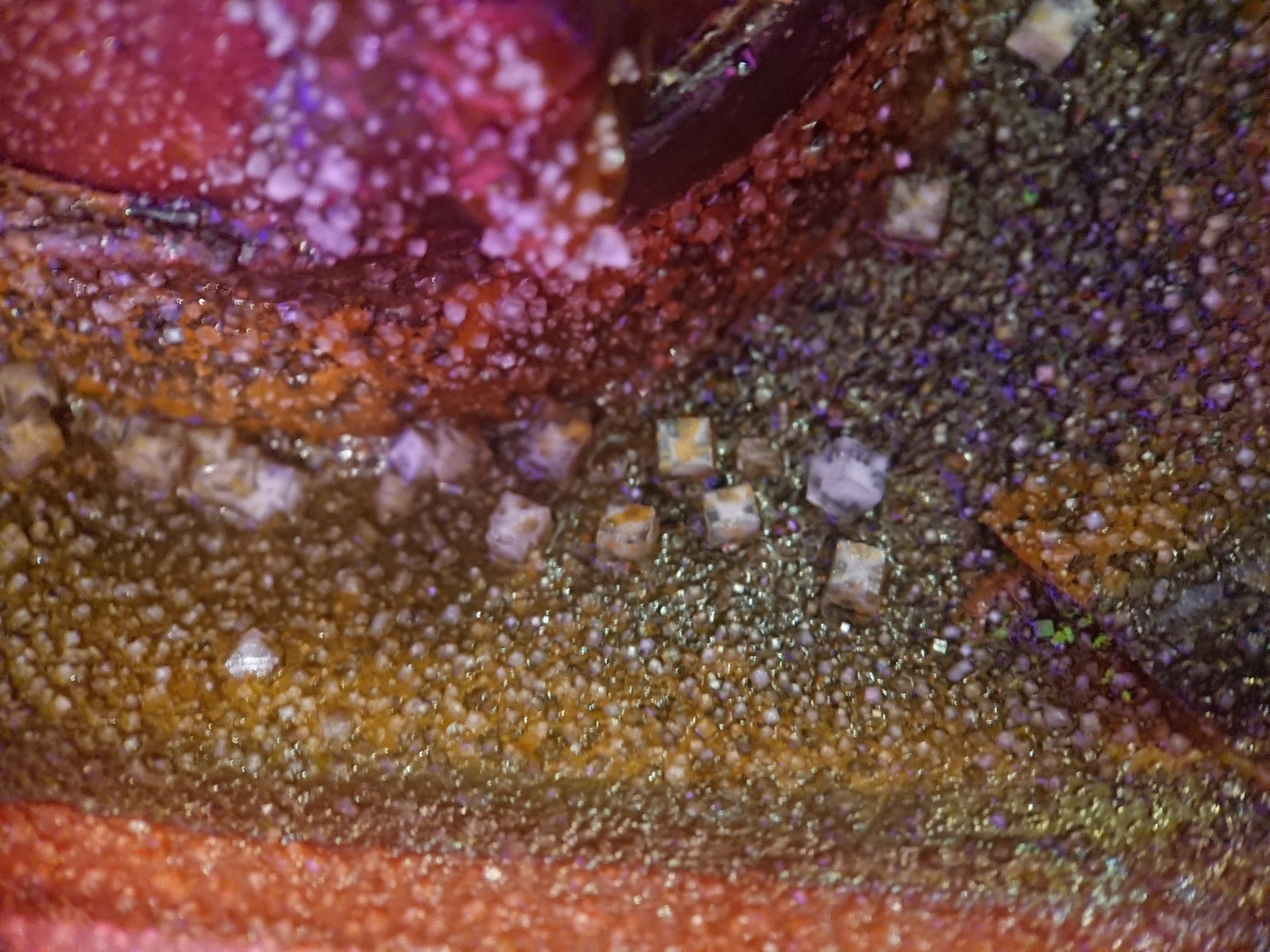 After waiting impatiently for a reaction and none appeared to be forthcoming, I decided to catalyse the experiment with agents previously know to incite rapid electrochemical reactions, a solution of CuSO4 & NH3Cl – Copper Sulphate and Ammonium Chloride was added to the vessel.