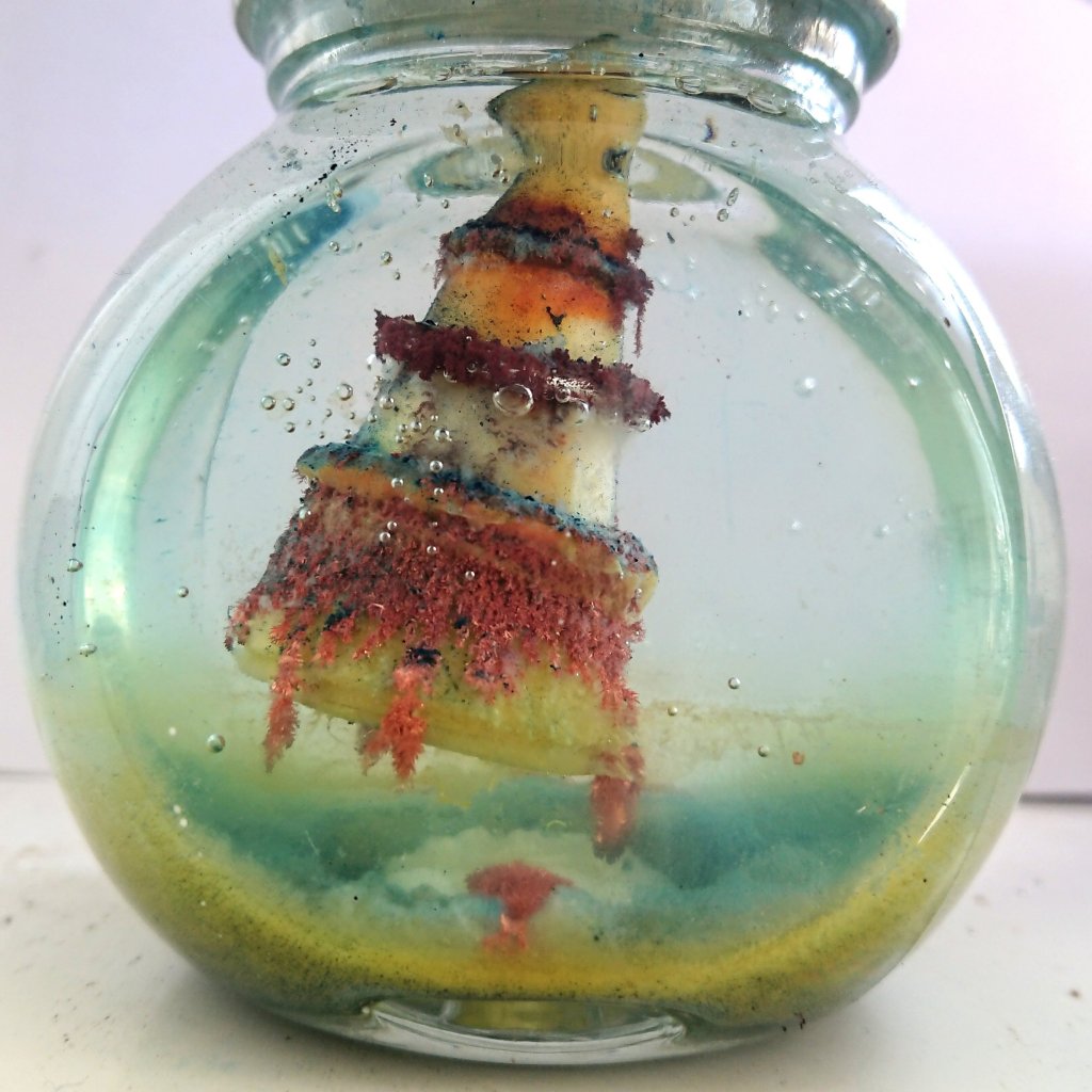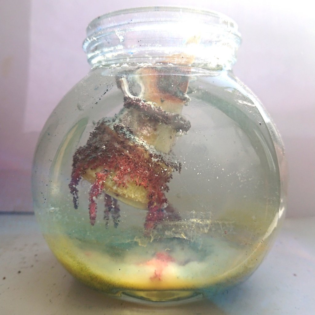 Reaction Posted on September 4, 2023 by DrB Reply Effervescent reaction as a result of a sprinkle of Copper Sulphate crystals and Prussian Blue powder.